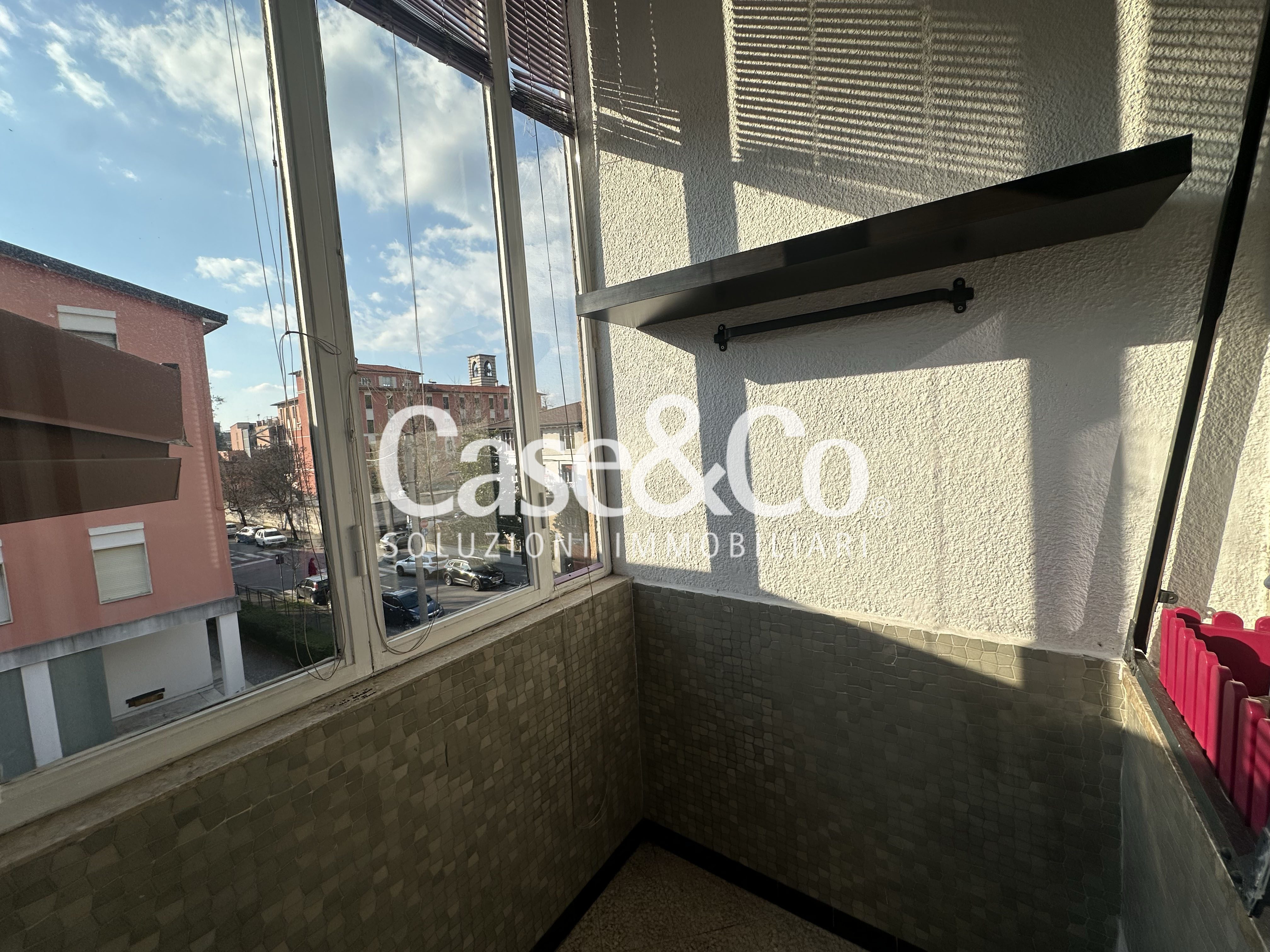 Luminiosissimo appartamento sito al secondo e ultimo piano composto da: ampio ingresso, cucina separata con piccolo balcone, ampio soggiorno anch’esso con balcone e da uno studio trasformabile in camera per le ampie dimensioni con accesso al balcone.